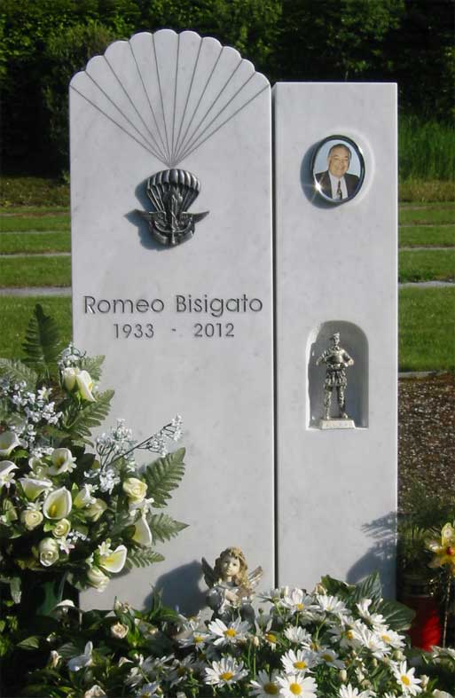C-72 Bianco Carrara Marmor, matt geschliffen Motiv für Fallschirmspringer, Emblem aus wetterfestem Aluminiumguss
